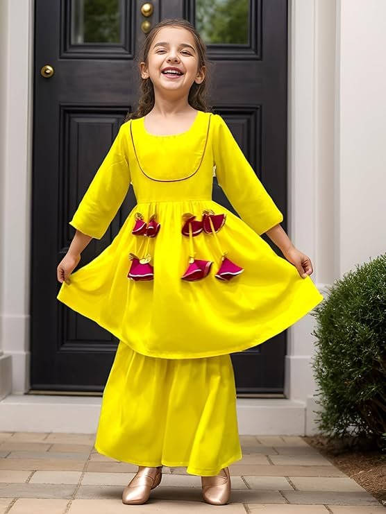 A.T.U.N. (ALL THINGS UBER NICE) Girls Polyester 3/4 Sleeve Kurta and Sharara Set | Traditional Ethnic Wear Clothing Set for Festival and Special Occasions