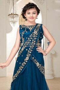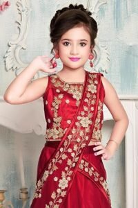 Brand: White Button White Button Girls Polyester Blend New Stone And Embroidery Work Half Saree Styled Kids Readymade Lehenga Choli
